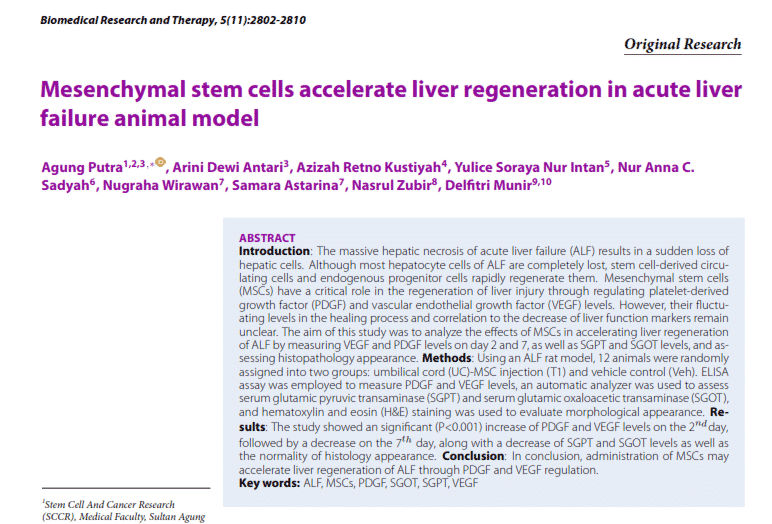 Mesenchymal stem cells accelerate liver regeneration in acute liver failure animal model